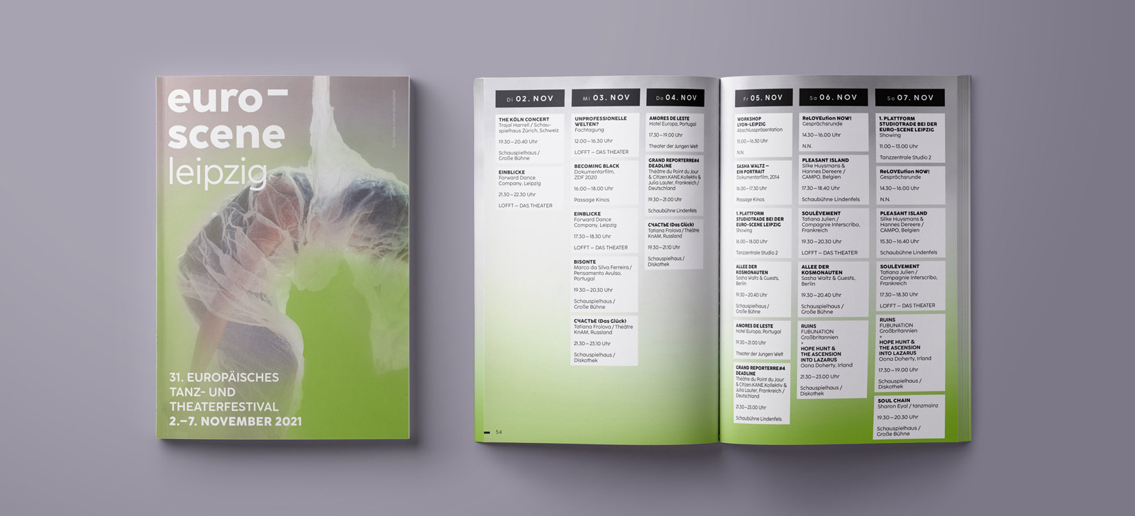 Aktuelles Theater, innovativer Tanz und neueste performative Darstellungsformen – mutig, zeitdiagnostisch, gesellschaftlich engagiert – bedurften einer neuen Kommunikation, die Tradition, Sinnlichkeit, Haltung und Emotionalität transportiert und genau dort ankommt, wo die euro-scene ihre Botschaften platzieren möchte.