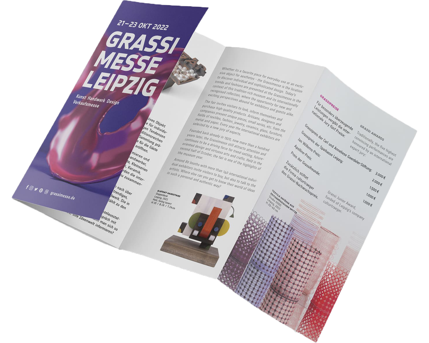 »Internationales Forum für Angewandte Kunst und Produktdesign« – das ist die Grassimesse. Ein Event für Kreative, Galerien, Fachleute und Besucher*innen aus ganz Europa. Seit hundert Jahren in Leipzig, seit 1997 wiederbelebt und seit 2009 in unseren gestalterischen Händen.