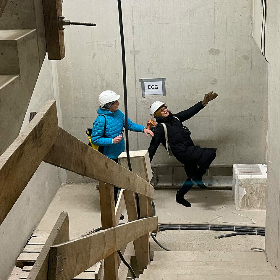 In einem Auftakt-Workshop klärten wir Rahmenbedingungen, Schnittstellen, Workflows und Ziele. In enger Abstimmung ging’s weiter. Immer wieder Baustellenbesichtigungen, Material-, Größen- und Sichtachsentests. So erreichten wir eine intuitive und stressfreie Orientierung durch das Gebäude, die noch dazu toll aussieht und gute Laune macht.